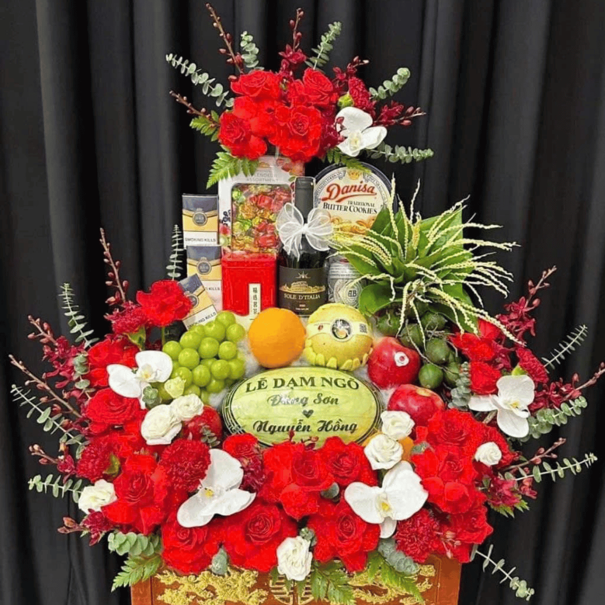 Từ những thức quà quen thuộc gắn liền với phong tục cưới hỏi người Việt, đến những món mang hơi thở phương Tây sang trọng, tất cả đều được chọn lọc kỹ càng, trình bày chỉn chu. Không thể thiếu là sắc hoa tươi rực rỡ – biểu trưng cho sự nở hoa của tình yêu và hạnh phúc lứa đôi – được trang trí theo tông màu mà bạn yêu thích, góp phần tạo nên không khí ấm cúng và trang nhã cho ngày trọng đại.